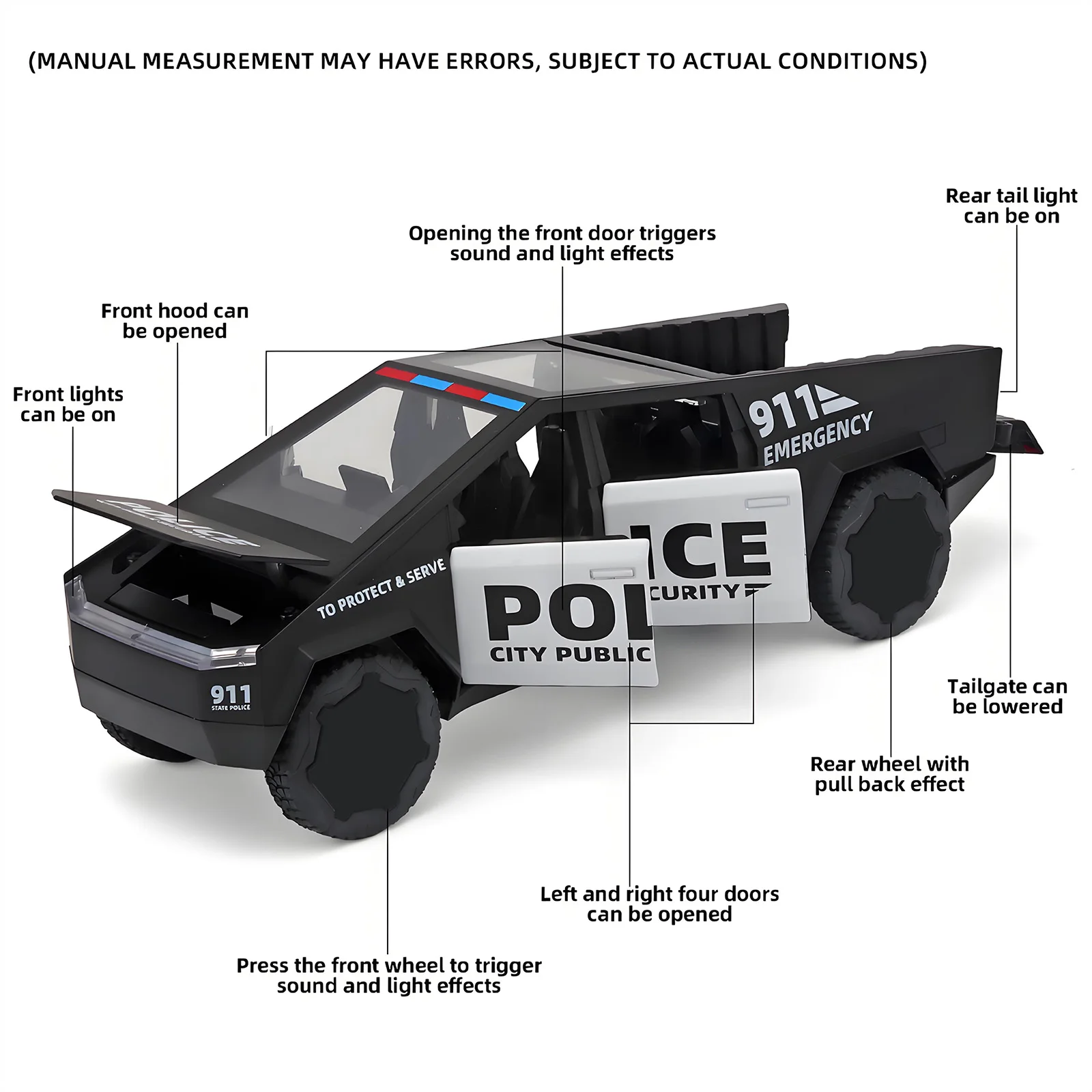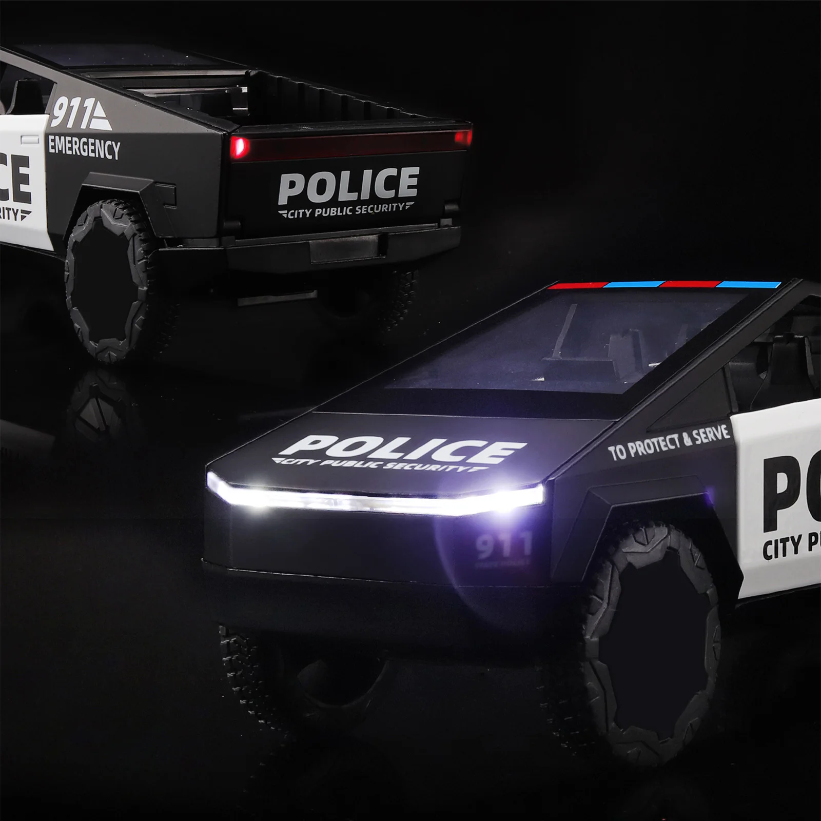 1:32 Cybertruck Police Truck Die-cast Metal Alloy With Sound