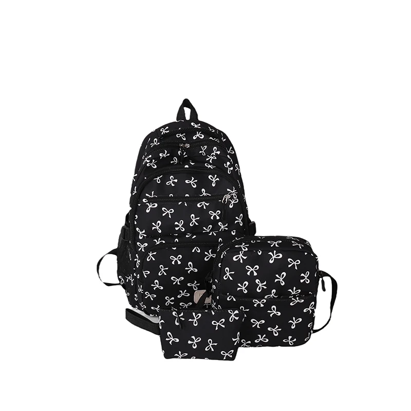 Set Bow Print Backpack with Crossbody Bag and Small Purse – Stylish Trio for Every Occasion